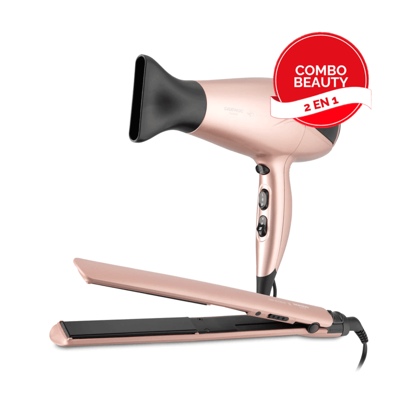 Lográ un look liso, brillante y prolijo todos los días con el Combo Liss & Glow DSet DUO 200 de Daewoo Beauty. Un set práctico y completo que combina secador de pelo potente y planchita de alisado, ideal para el uso diario en casa.