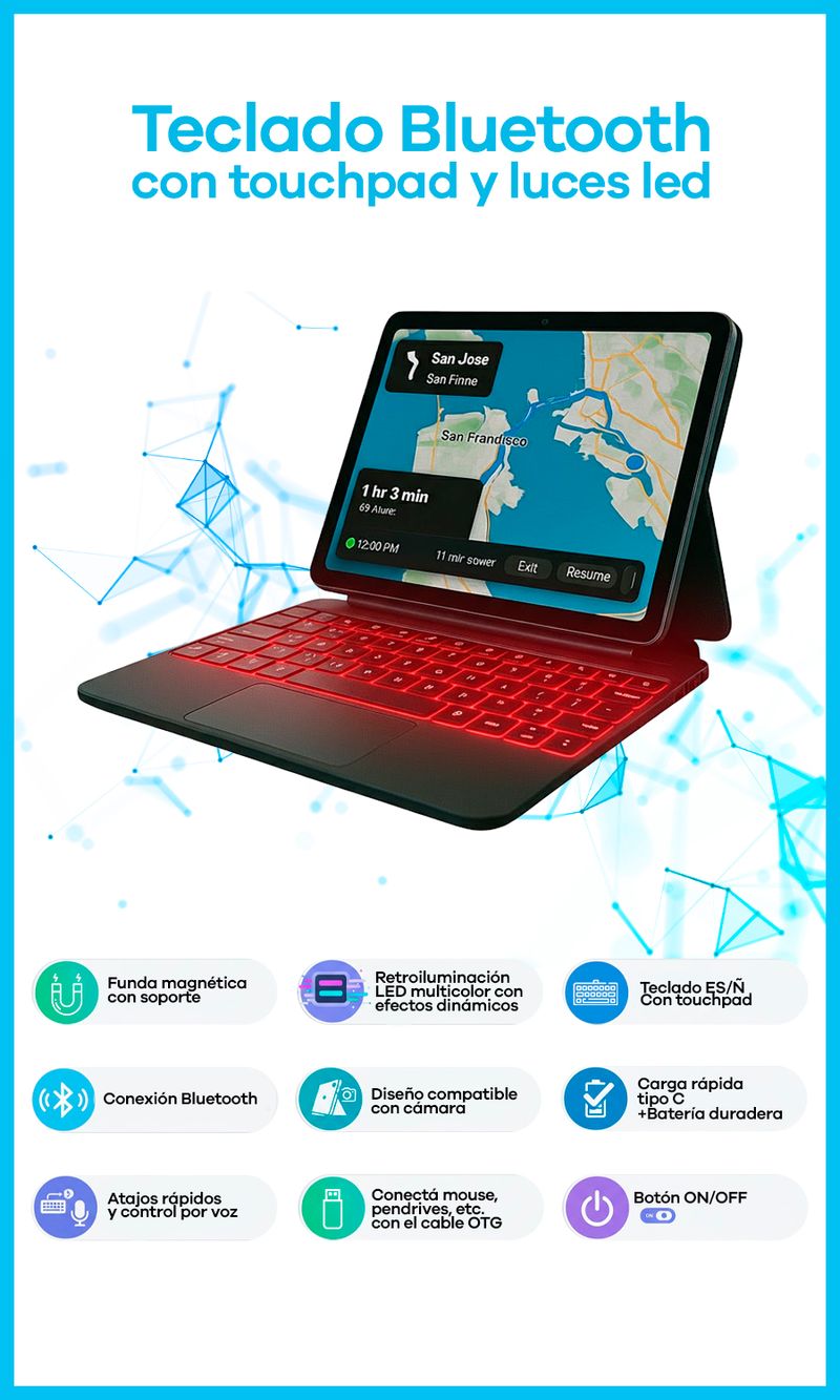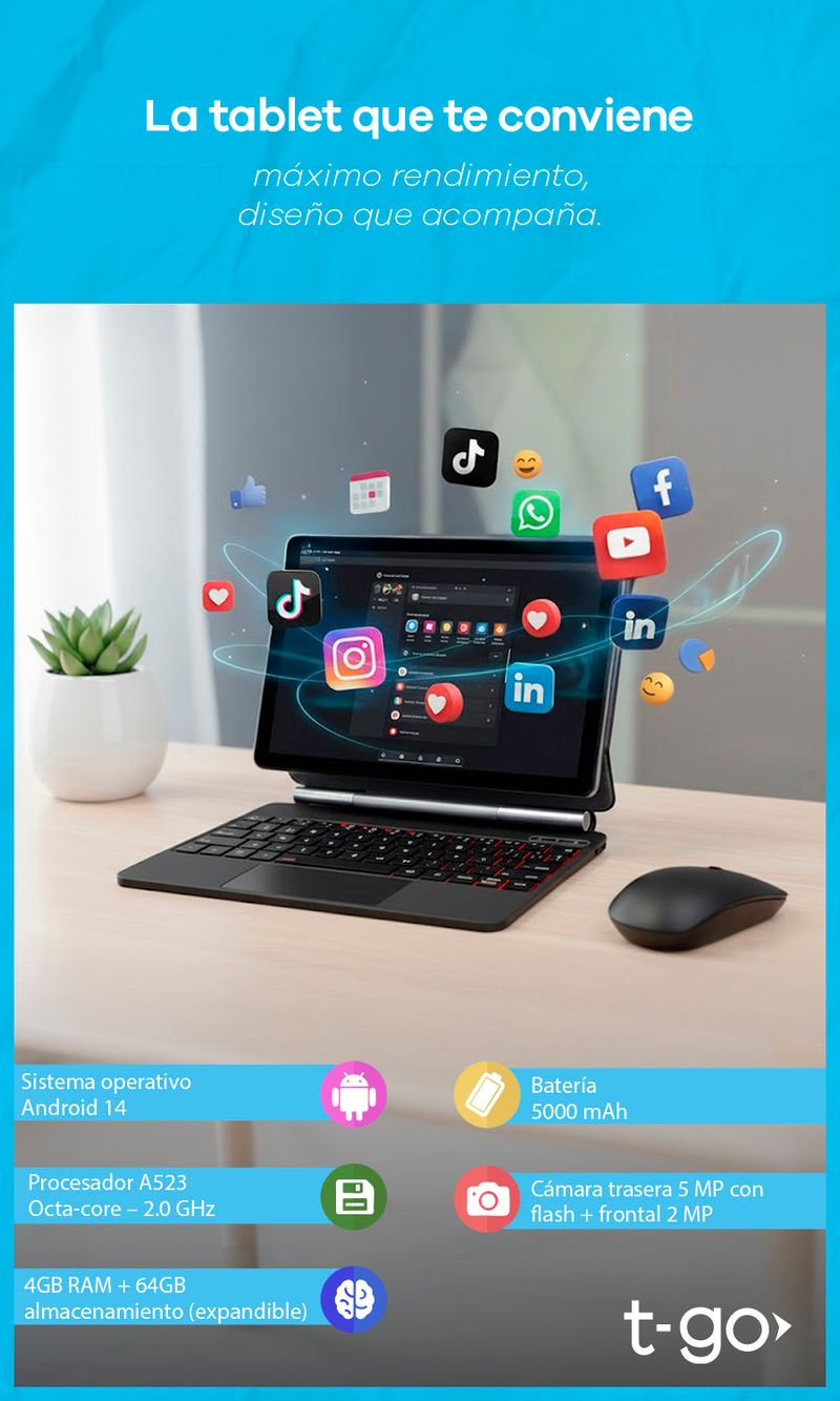 Tablet T-GO 10" Android 14 con case de metal + Funda con teclado Bluetooth Retroiluminado