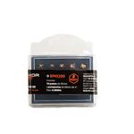 Estuche plástico con gancho para colgar.