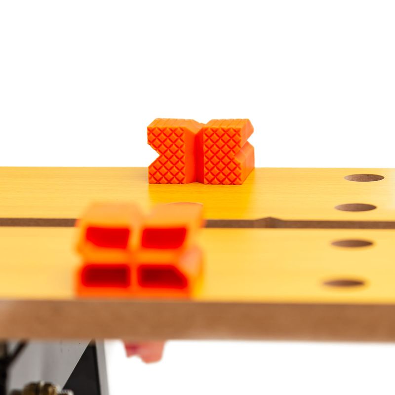 Cuenta con 4 topes para usar como prensas. Apertura máxima entre maderas: 8,5 Cm.
