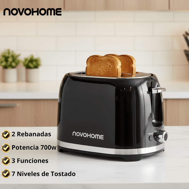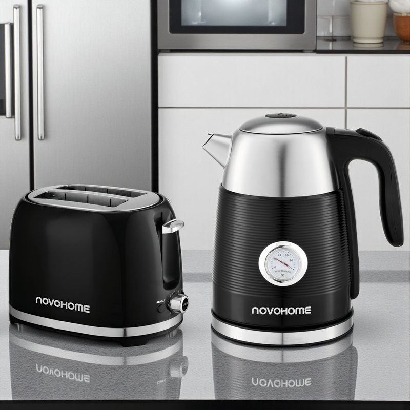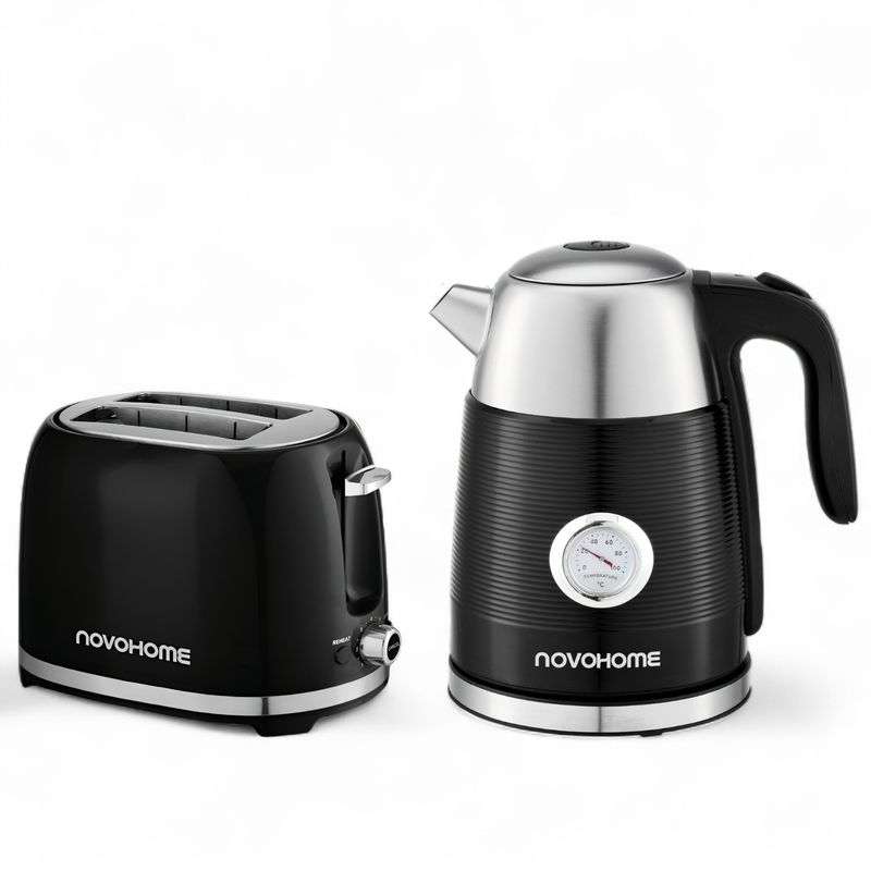 COMBO NOVOHOME TOSTADORA NEGRA 2 BAHIAS 700W + PAVA ELECTRICA