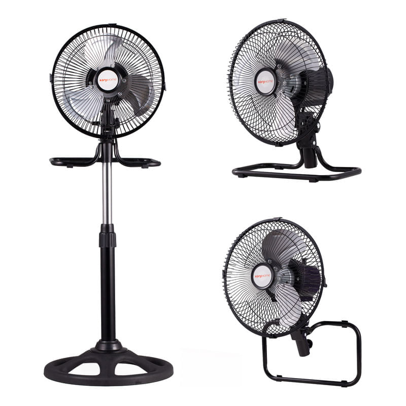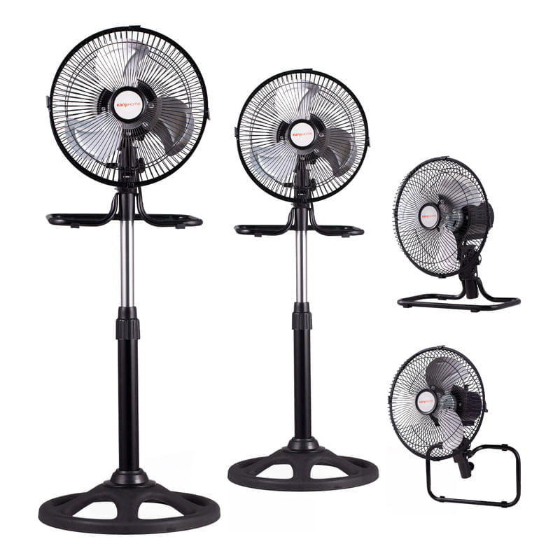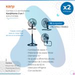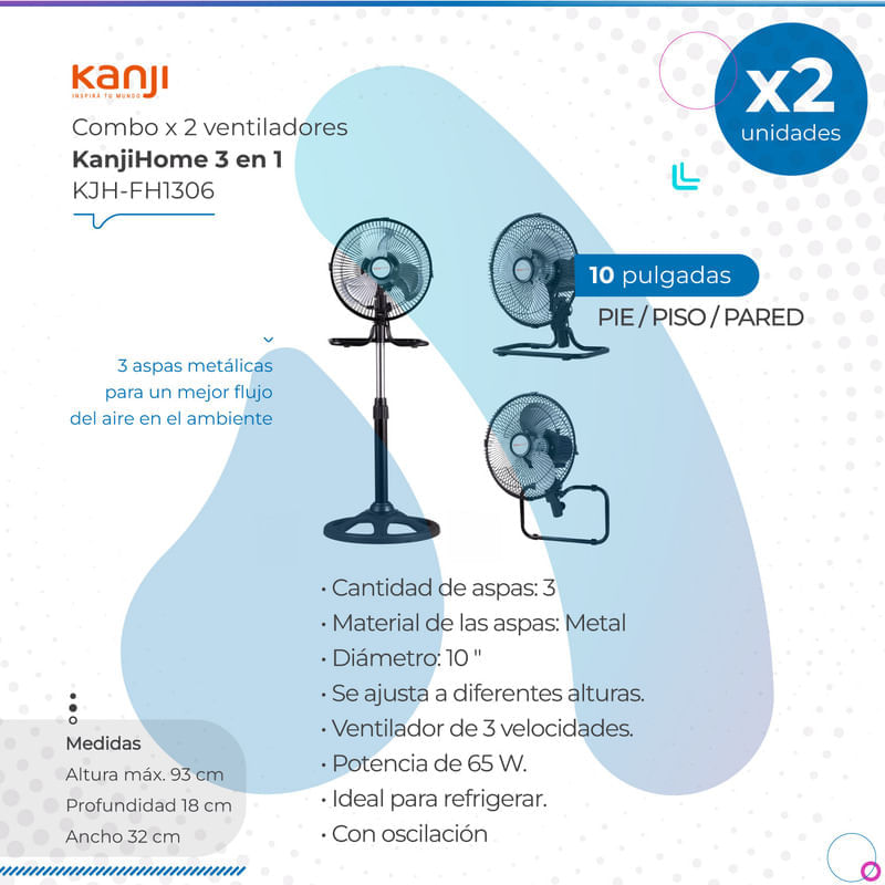 Combo x2 Ventilador 10 Código de producto: KJH-FH1306 Especificaciones: - 3 en 1: Colgar-Mesa-Pie - 3 velocidades - 3 paletas metálicas - Regulable en altura - Potencia: 65W