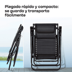 El Combo x4 de reposeras WAGGS REPO03 es la elección ideal para equipar tu quincho, jardín o escapadas al aire libre, ofreciendo confort, resistencia y estilo en conjunto. Cada reposera cuenta con diseño de gravedad cero que favorece una postura ergonómica, alinea el cuerpo y reduce la tensión muscular. Su estructura de hierro reforzado con pintura epoxi anticorrosiva garantiza estabilidad y durabilidad, mientras el asiento Textilene de alta densidad brinda transpirabilidad, secado rápido y mantenimiento mínimo. Además, el sistema multiposición con bloqueo de seguridad permite ajustar la inclinación a gusto, y su diseño plegable facilita el guardado y transporte. Con apoyabrazos equipados con portavasos y portacelular desmontable, el combo de 4 unidades WAGGS REPO03 asegura comodidad grupal y versatilidad para disfrutar al máximo cada momento de relax en exteriores.