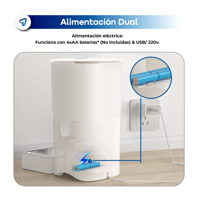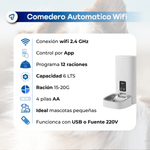 Dispensador de comida automático WAGGS de 6L ideal para asegurar que tu mascota siempre tenga acceso a alimento fresco incluso cuando no estás en casa. Su capacidad de 6 litros permite almacenar suficiente comida para varios días y su programación configurable garantiza una alimentación controlada y constante. Diseñado con materiales resistentes y seguros, cuenta con un sistema de suministro automático que mantiene un flujo constante de alimento y un diseño desmontable para facilitar la limpieza. Conexión a Wi-Fi de 2.4 GHz, Funciona con 4 baterías AA* o conexión USB/220V, asegurando su uso en cualquier situación. Sus dimensiones son 34 x 19,2 x 29 cm con un plato de 14 x 13 x 5 cm y un peso de 1.65 kg. Incluye dispensador desmontado, adaptador de corriente y manual de usuario. Una solución práctica y confiable para garantizar el bienestar de tu mascota. *Baterías no incluidas.