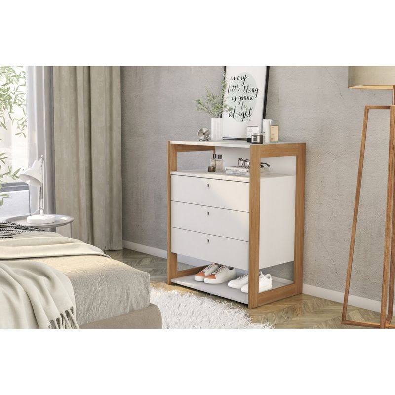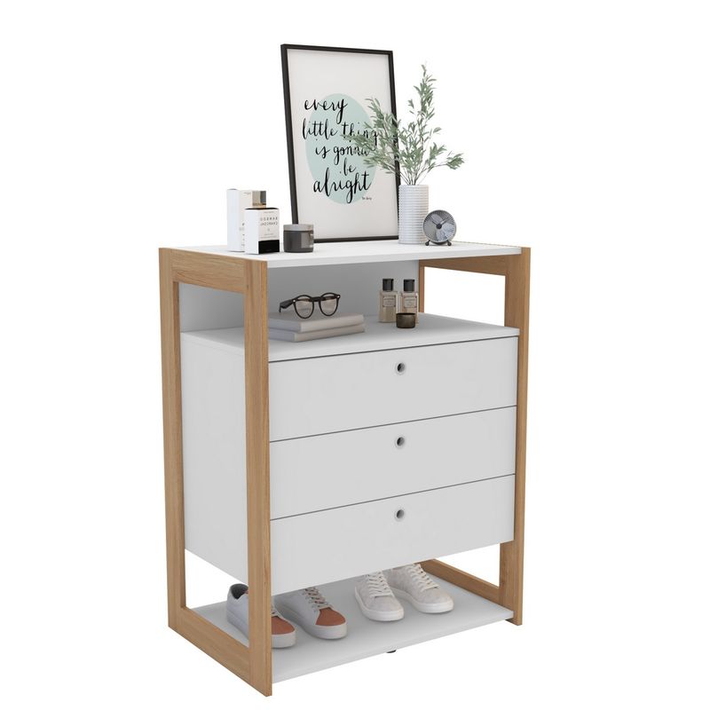 Cómoda 3 Cajones y 2 Estantes Mix & Match - Blanco / Aveiro