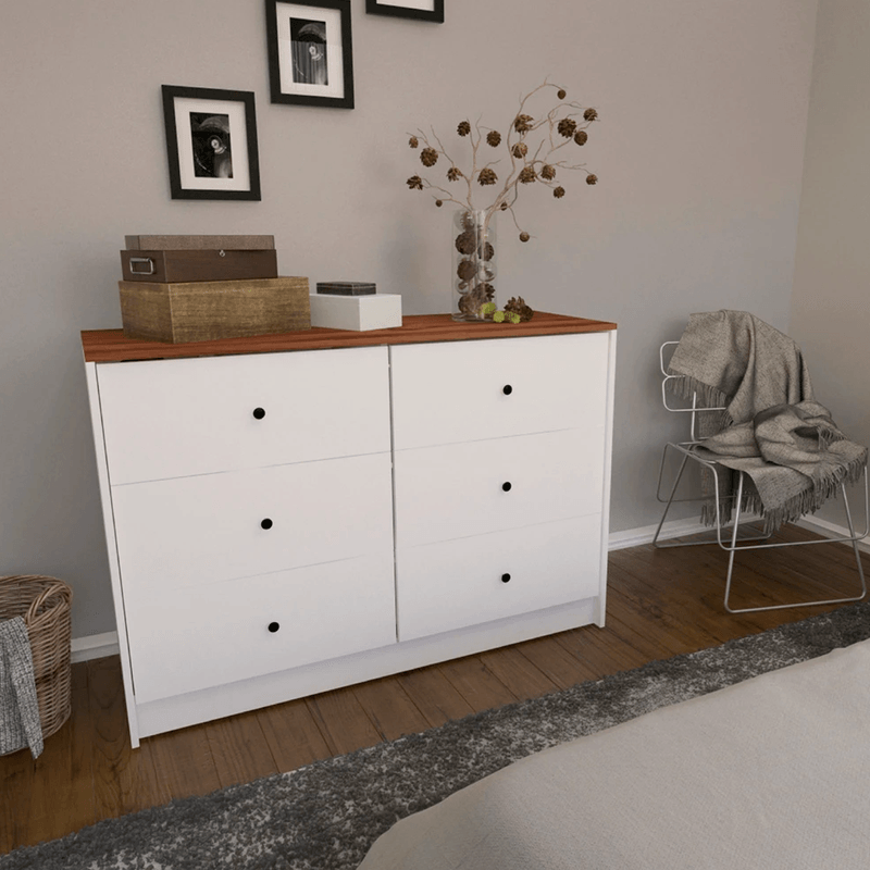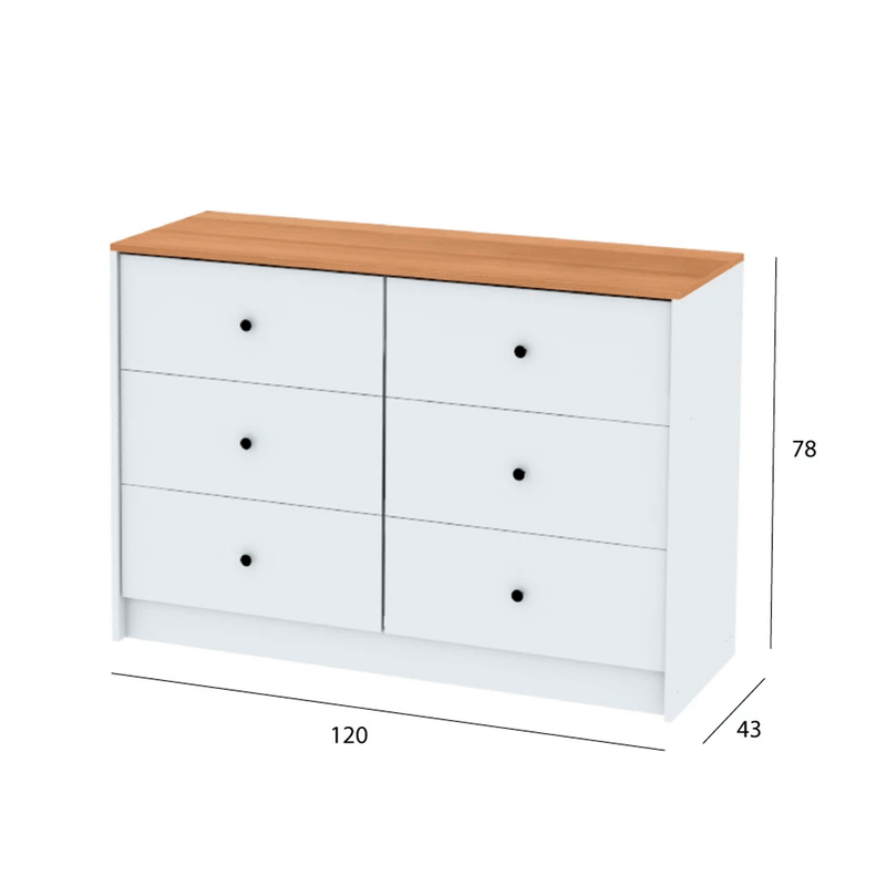 Cómoda Cajonera Dormitorio 6 Cajones Centro Estant Blanco/Paraíso