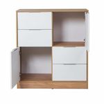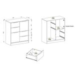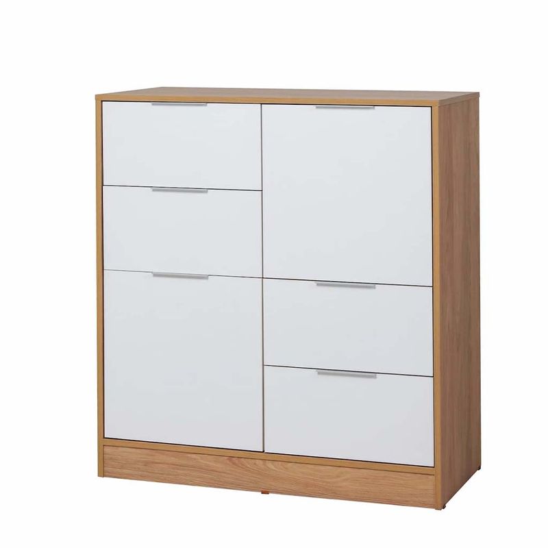 ¡Dale un toque único a tu dormitorio con la comoda nordica Murano! Tiene cajones y puerta en color hickory/blanco.