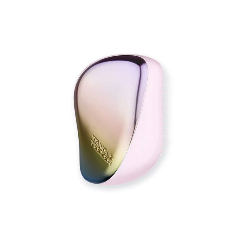 Nuestro cepillo para el cabello Tangle Teezer Compact Styler suaviza, da brillo y define on the go. Ideal para cabellos finos a medianos, sus dientes flexibles de dos niveles se deslizan suavemente por el cabello, ayudando a desenredar sin tirones y a domar los mechones sueltos, incluso en cabello húmedo.