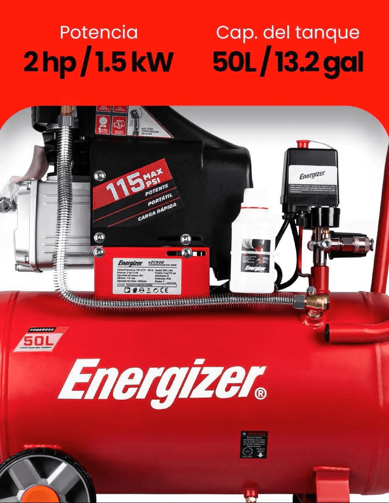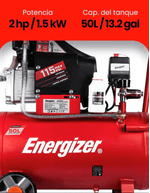 COMPRESOR DE AIRE ELECTRICO ENERGIZER EZC50D 50LTS 2HP
