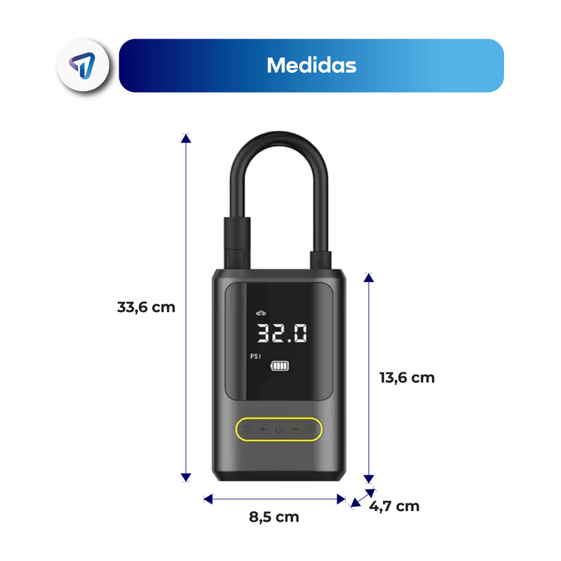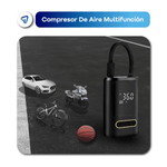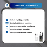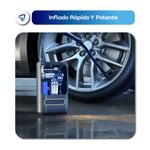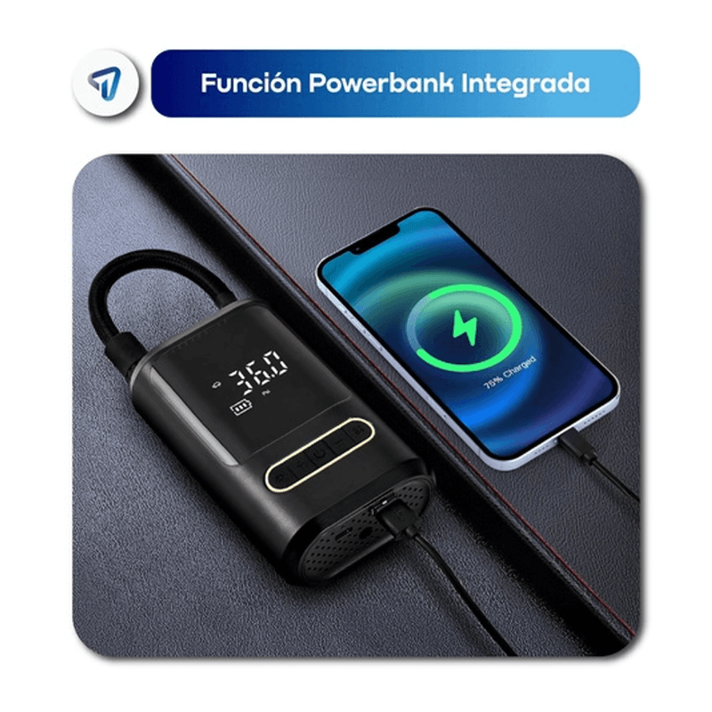 El Compresor de Aire Portátil WAGGS es la herramienta perfecta para inflar neumáticos de autos, motos, bicicletas, pelotas y colchones de forma rápida y segura. Su pantalla digital permite visualizar con precisión la presión y ajustar el inflado exacto gracias a su función de parada automática. Además, cuenta con luz LED para emergencias nocturnas y función powerbank con salida USB para cargar tus dispositivos. Su batería de 4000 mAh, potencia de 50W y presión máxima de 150 PSI garantizan eficiencia y portabilidad. Incluye manguera resistente al calor, cable Tipo-C, boquillas para distintos usos y cable de alimentación. Preparación y versatilidad en un solo equipo.