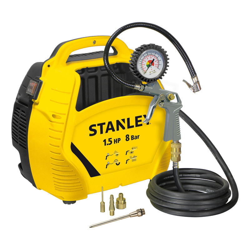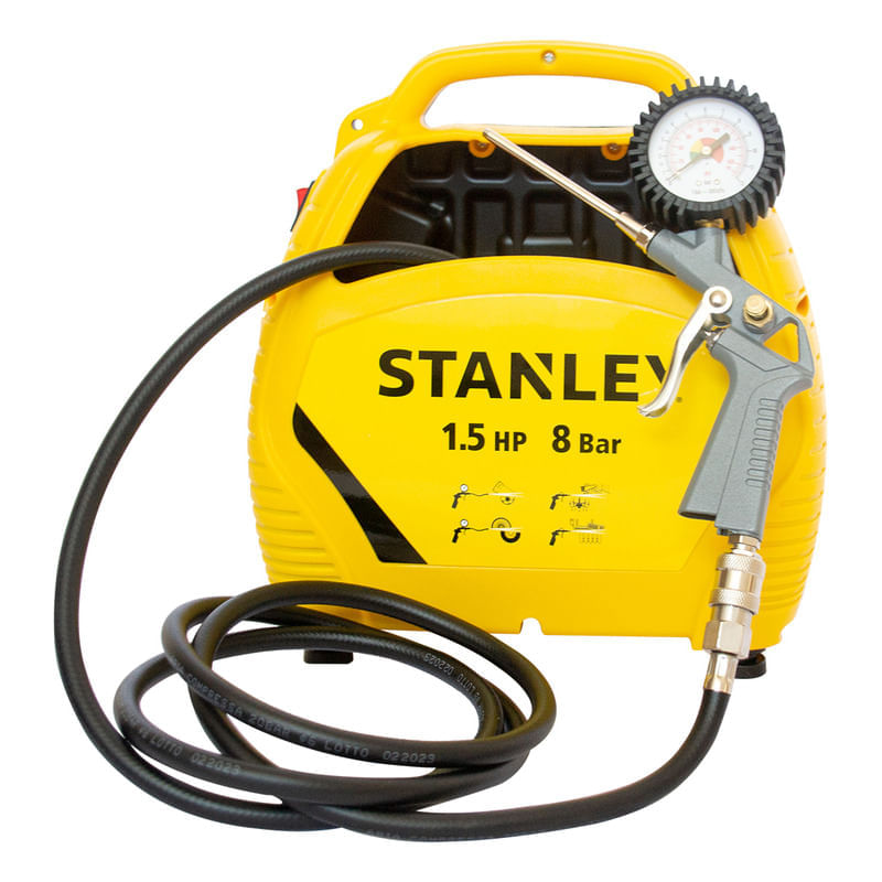 Con su diseño compacto y liviano, este compresor es fácil de transportar y no ocupa mucho espacio en tu taller o garaje. Ya sea para inflar neumáticos de bicicleta, moto, auto o camioneta, o para sopletear, el compresor Stanley sin tanque es tu compañero perfecto para cualquier trabajo.