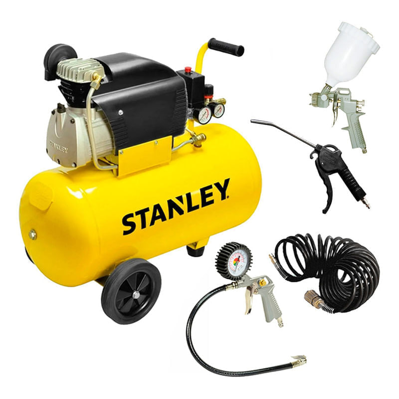 Compresor De Aire Stanley 50 Litros 2 Hp + KIT 4 piezas