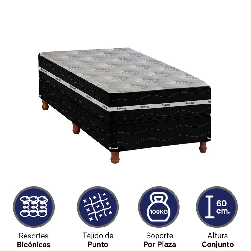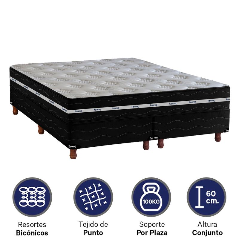Su base de Resortes Bicónicos fabricados con el mayor diámetro de acero del mercado, sumado a la combinación perfecta de espumas firmes y suaves en su adecuada proporción, brinda un excelente soporte sin alterar el alto grado de confort que lo caracteriza.