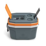 La conservadora esté especialmente diseñada para ser útil, segura y versatil. Tiene mango reforzado para una mayor resistencia, proporcionando seguridad para el transporte individual. Es ergonomica a través de angulaciones en las esquinas, para el transporte en doble. Tiene una tapa deslizante con asas superiores e inferiores, que posibilitan la apertura con una sola mano. En su base, posee asas que facilitan la retirada del líquido, o hielo. Los líquidos los conserva 24hs y los alimentos 12hs.