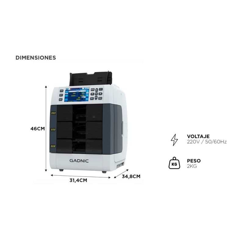 La contadora Gadnic ofrece velocidad profesional de ?900 billetes por minuto, ideal para entornos exigentes que requieren agilidad sin sacrificar exactitud.
