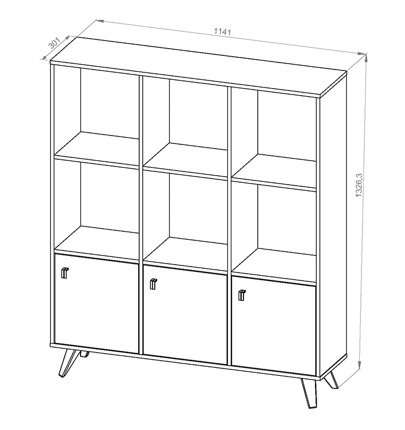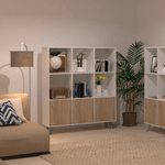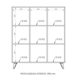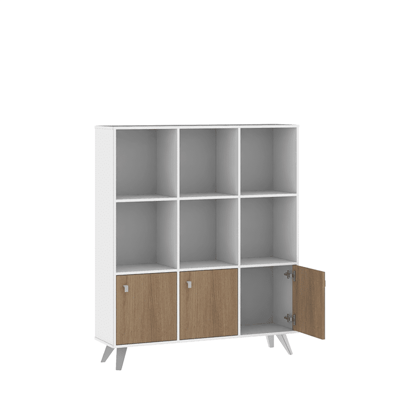 El módulo de tres cuerpos de la línea Escandinava se caracteriza por líneas simples y colores claros. Construido en melamina con un diseño nórdico este mueble está compuesto por nueve divisiones internas, tres cerradas con puertas y seis libres, puede ejercer varios usos dependiendo del ambiente en el que se lo utilice.