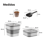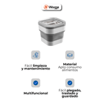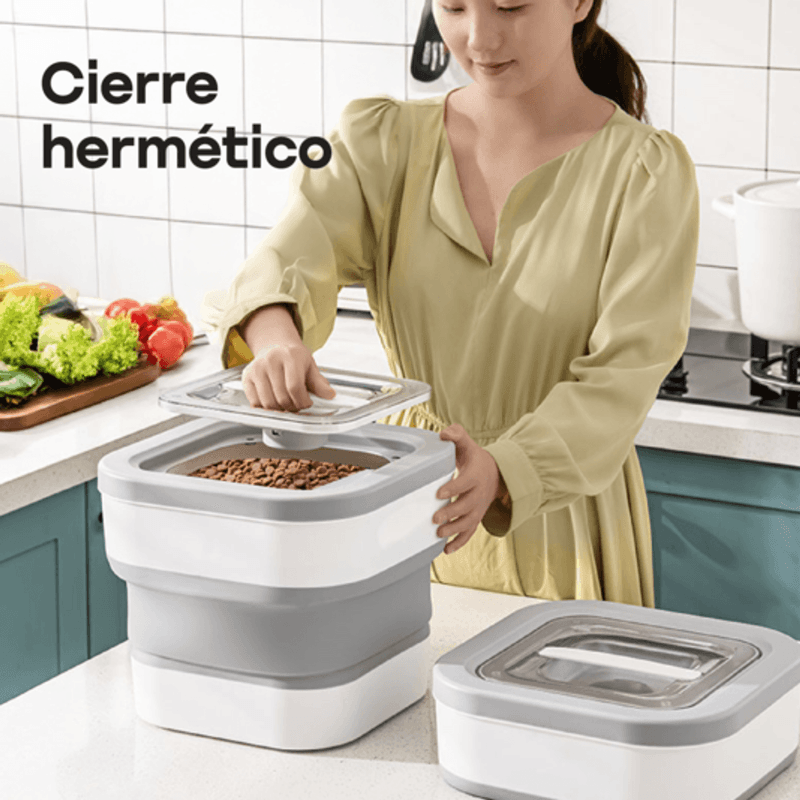 El contenedor plegable para alimento de mascotas WAGGS PETF16 ofrece una solución práctica y moderna para mantener la comida de tu mascota siempre fresca y protegida. Su estructura expandible de 15 litros permite almacenar alimento balanceado o snacks y plegarlo fácilmente cuando no se usa. La tapa imantada con cierre hermético y sello de silicona conserva el aroma y evita la humedad, mientras que sus materiales de grado alimenticio, libres de BPA, garantizan seguridad y durabilidad. Incluye pala y dosificador con medidas para un control preciso de las porciones. Compacto, funcional y estéticamente moderno, el WAGGS PETF16 combina diseño y practicidad en un solo producto.