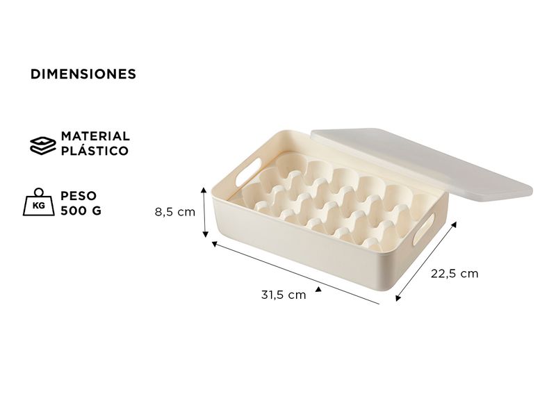 Contenedor con tapa para conservar huevos. Permite almacenar hasta 24 huevos.