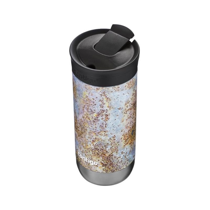 Huron es un termo tipo Mug de alta calidad. Fabricado en acero inoxidable de doble capa aislado al vacío. Mantiene las bebidas calientes por 6 horas o frías por 12 horas. (*) Posee una tapa de una sola pieza a prueba de derrames SnapSeal. Fácil de usar con una sola mano. Se ajusta a la mayoría de cafeteras individuales y portavasos de carros. Para beber con una sola mano. Posee una capacidad de 473 mililitros. Amplia apertura ideal para cubitos de hielo. Diseño de cuerpo dividido para facilitar la limpieza. La tapa y el vaso son aptos para la rejilla superior del lavaplatos. 100 % libre de BPA. Capacidad en Volumen: 473ml. Tipo de material: Acero inoxidable Tamaño: Adulto. Peso a 290 gramos Medidas a 8 x 8 x 19 cm.