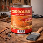 Corroless para Metales detiene el avance del óxido para convertirlo en una base estable para la pintura de terminación. Utiliza el doble principio: que el óxido no progrese en el hierro, por sus pigmentos anticorrosivos especiales, y por las cargas minerales laminares retrasan el avance del agua.