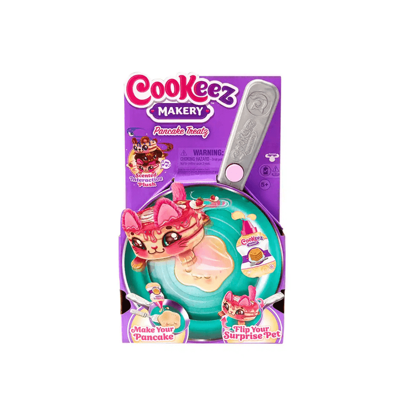 Te sorprenderá desde el momento que empieces a jugar. A medida que des vuelta la masa de panqueques en la sartén, descubrirás a tu propio peluche interactivo perfumado en forma panqueque con olor. Cookeez Makery Pancake Treatz es el juguete que viene con todo lo que los niños necesitan para mezclar y hacer un peluche sorpresa.