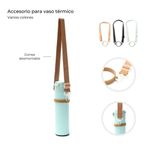 Este accesorio es una correa de transporte desmontable diseñada para añadir comodidad a tus envases. Está específicamente adaptada para vasos o botellas con un diámetro de 9 cm. La correa permite llevar tu botella al hombro o cruzada, liberando tus manos y facilitando el traslado. Su diseño es funcional y se ajusta de forma segura al cuerpo del envase.