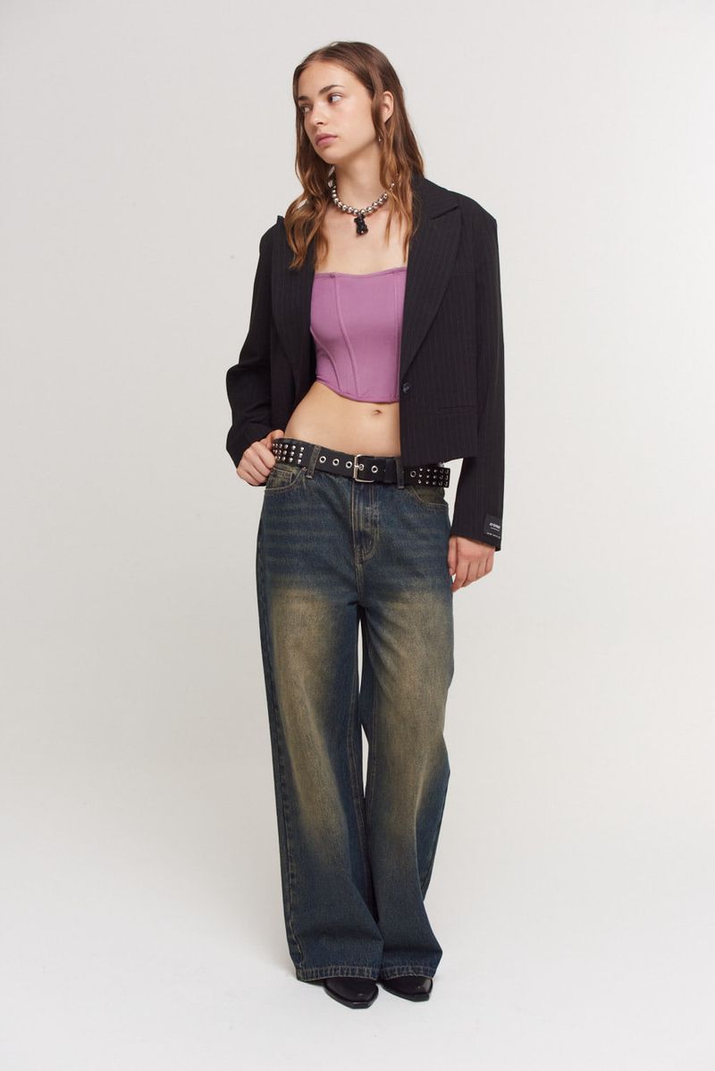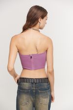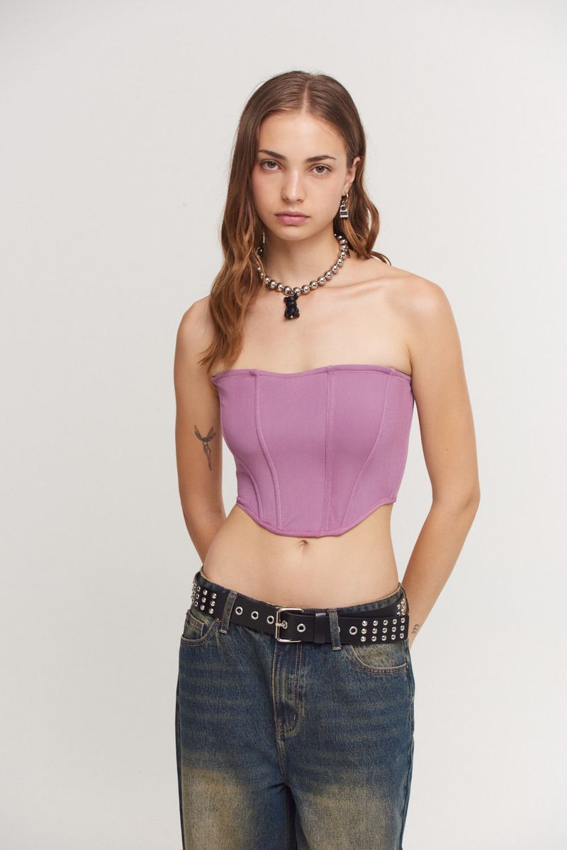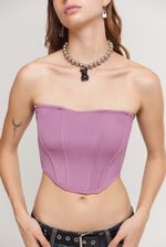 Corset en microtul elastizado armado con ballenas. Cierre trasero desmontable que permite su abertura. Accesorios personalizados de marca.