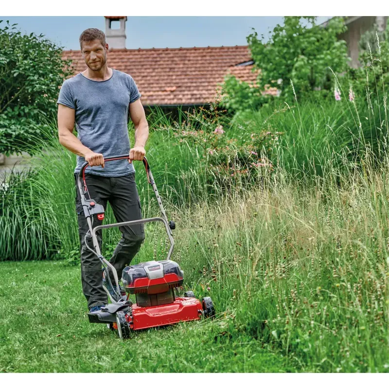 El cortacésped inalámbrico Einhell GE-CM 36/48 Li M-Solo representa la evolución del mantenimiento de espacios verdes, combinando la libertad del sistema sin cables con la potencia de un motor a explosión. Equipado con tecnología de motor sin escobillas (Brushless), ofrece un rendimiento superior, mayor autonomía y una vida útil prolongada sin el mantenimiento que requieren los motores convencionales. Es la herramienta perfecta para quienes buscan un jardín impecable con el mínimo esfuerzo, operando bajo el ecosistema Power X-Change de 18V (utiliza dos baterías de 18V para alcanzar 36V de potencia pura).