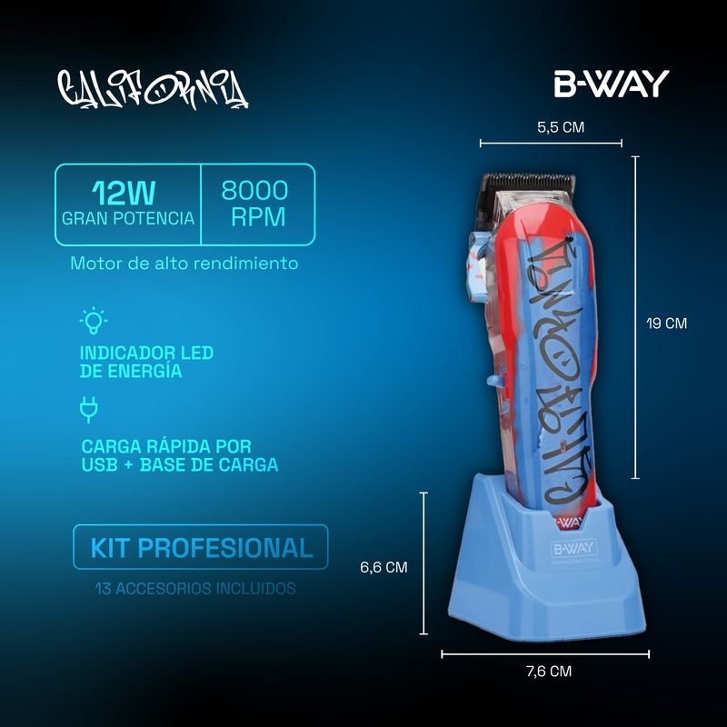 Cortadora de Pelo Bway California profesional + Afeitadora Zero + Trimmer One