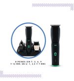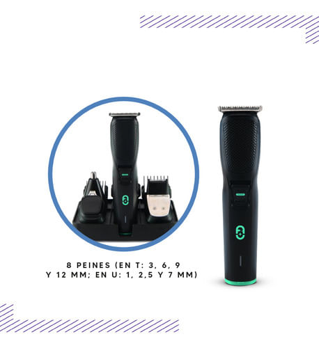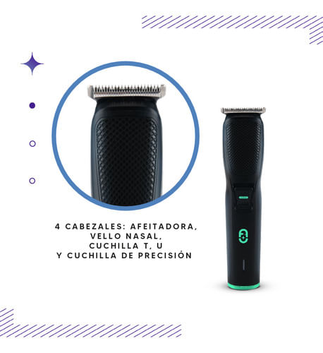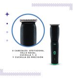 Equipada con cuatro cabezales intercambiables y ocho niveles de corte, permite personalizar la longitud del cabello desde 0.5 mm hasta 7 mm, adaptándose a diferentes estilos y preferencias. Su pantalla LED digital facilita el control de la batería y la selección de la longitud deseada, asegurando una experiencia de uso intuitiva y eficiente.
