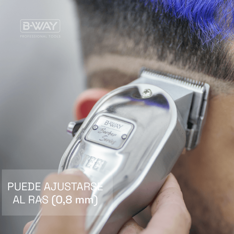 Maquina de cortar pelo profesional BWAY Steel Clip disenada para brindar potencia y precision en cada corte. Su motor de alto rendimiento y cuchillas de acero garantizan un trabajo fluido y sin tirones. Funciona con bateria recargable de larga duracion y tambien con cable ofreciendo autonomia y continuidad de uso. Su diseno ergonomico y resistente permite trabajar con comodidad durante largos periodos. Incluye peines de distintas medidas cable de carga cepillo de limpieza y aceite lubricante. Beneficios maquina robusta precisa y versatil ideal tanto para uso profesional como personal
