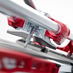 Guías más robustas atornilladas al soporte + soporte de las guías en aluminio inyectado: aumenta la rigidez de la máquina y la precisión de los cortes.