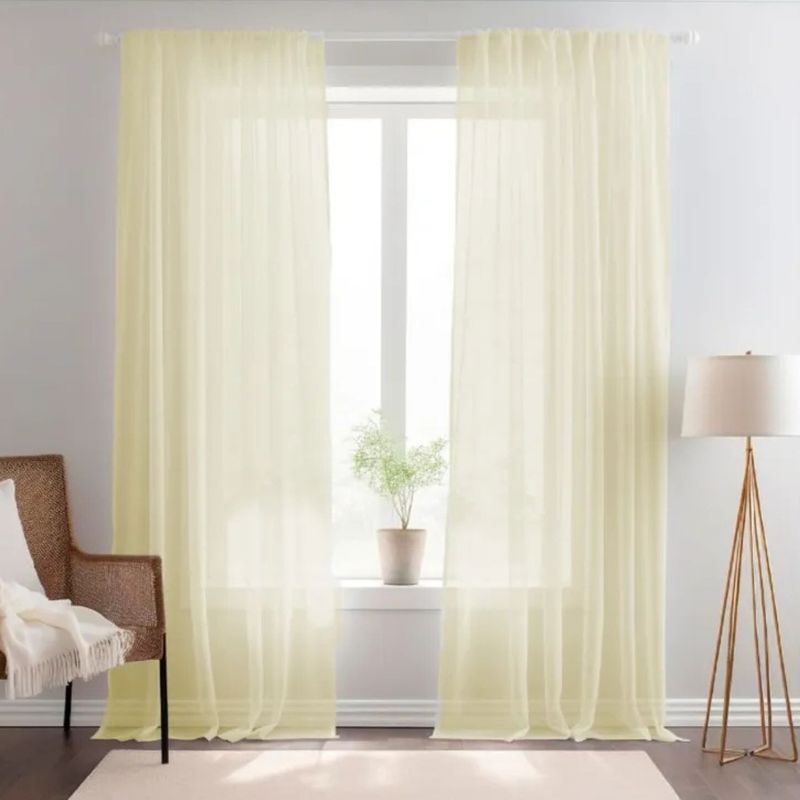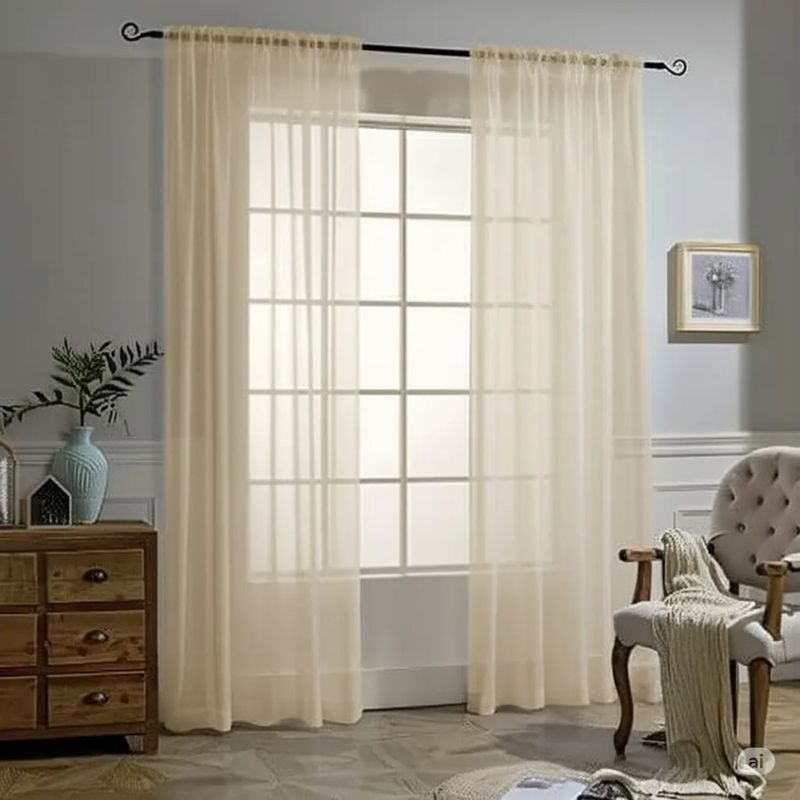 Las cortinas de voile liso son la elección perfecta para quienes buscan un toque de elegancia y simplicidad en su hogar, esta cortina no solo embellece el espacio, sino que también permite la entrada de luz natural, creando un ambiente acogedor y luminoso.