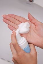 1. Con el rostro humedecido, presionar el dosificador una vez sobre la mano (Por su concentración, con sólo un pump bastará para cubrir todo el rostro, inclusive el cuello).
