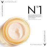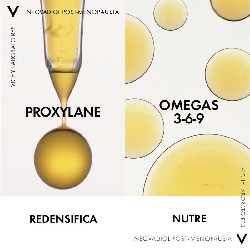 En la post-menopausia, las variaciones hormonales afectan a tu piel. Los estrógenos, la hormona femenina, descienden a niveles muy bajos mientras se dispara la frecuencia de producción del cortisol, la hormona del estrés. Esta combinación intensifica los signos del envejecimiento de la piel ya presentes durante la peri-menopausia. Neovadiol Post Menopausia crema reafirmante de noche reduce las manchas de la piel provocadas por el cambio de hormonas, mejora el tono y aporta luminosidad. Logra una piel más firme, disminuye la profundidad de esas molestas arrugas y reduce la flacidez. Reactiva los mecanismos de la piel: flacidez, densidad, arrugas.