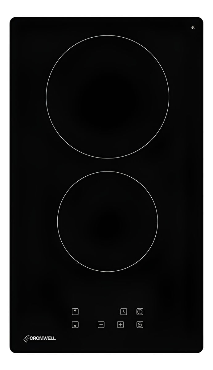 Panel de control táctil // 2 zonas de cocción // 9 niveles de potencia // Programador independiente de cada zona de cocción // Temporizador de cocción (120 min) // Bloqueo de seguridad automático // Apagado automático (después de 20 segundos) // Indicador de calor residual // Bloqueo para niños // Potencia total 3.0 kW 230V