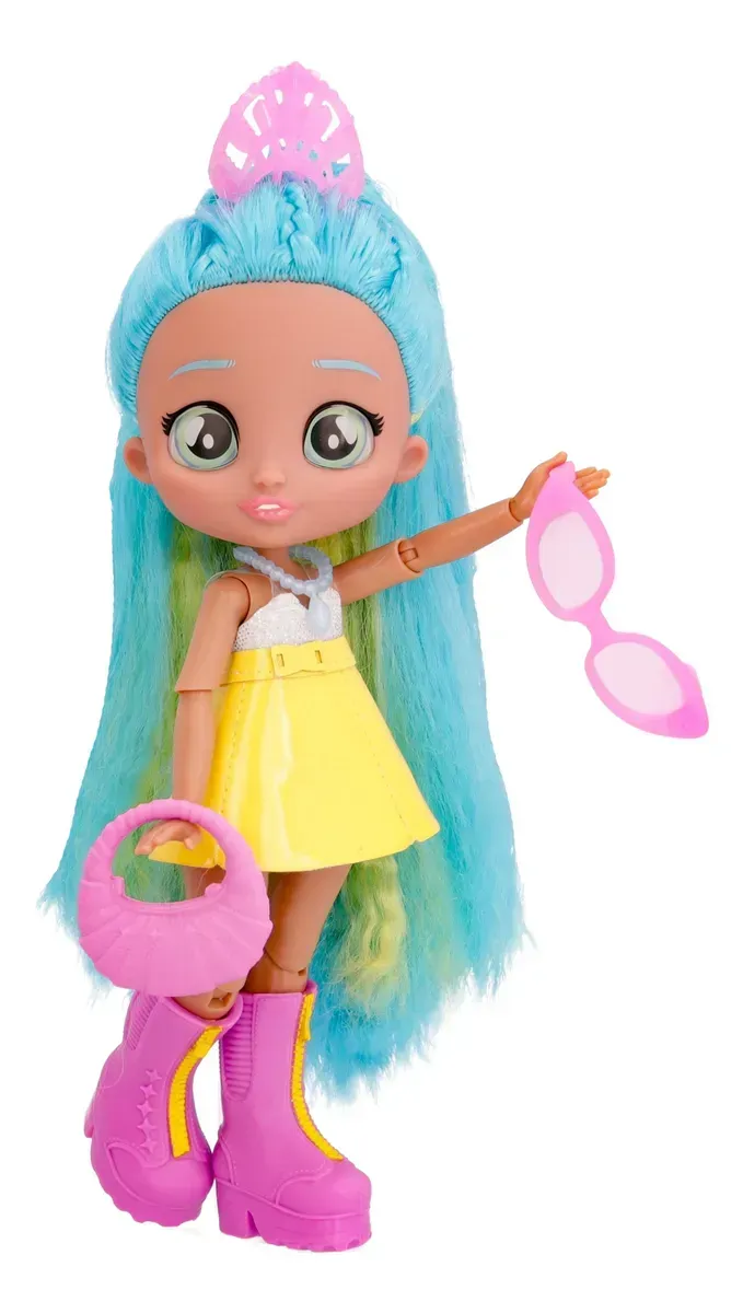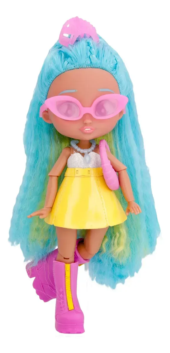 ¡Visten con ropita de moda e incluye 9+ sorpresas! ¡Tienen el pelo largo de nailon, y el cuerpo articulado!