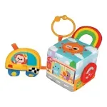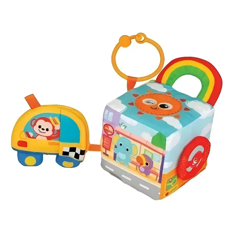 Cara de sol sonriente lenticular, taxi chirriante y arrugado, espejo seguro para bebés, manija y volante coloridos con arcoíris