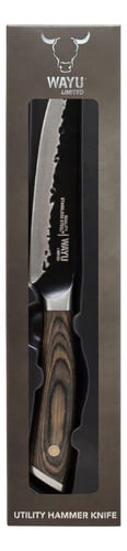 El Cuchillo Hammer Mediano Wayu es una herramienta de cocina equilibrada, diseñada para ofrecer la potencia de un cuchillo grande con la maniobrabilidad de un cuchillo más compacto. Es ideal para una variedad de tareas culinarias. Su diseño robusto y ergonómico garantiza un rendimiento confiable y cómodo, convirtiéndolo en una pieza indispensable en cualquier cocina.