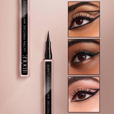 Descubre Idôle Ultra Precise Waterproof Eyeliner. La fórmula líquida que es fácil de aplicar, transferir, escamas y resistente a las manchas. El aliado perfecto para lograr por fin tus objetivos delineadores. Su punta ultrafina de 0,1 mm ofrece una línea fina de hasta 0,4 mm con una fórmula de tinta sobrealimentada con pigmentos luminosos de negro carbón. Negro ultrabrillante resultado en una sola pasada, efecto excepcional incluso en la sombra.