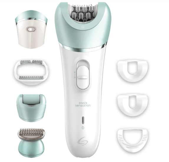 Equipada con un cabezal rotativo de 36 pinzas hipoalergénicas, la Oasis Sensation elimina incluso el vello más corto, y su luz guía integrada te ayuda a visualizar y no perder de vista ningún pelo.