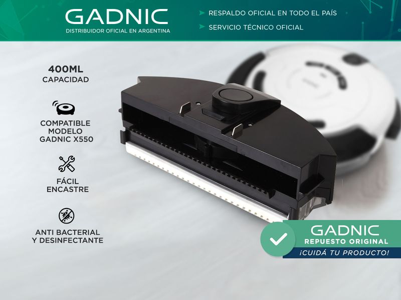 ¡Repuesto original de depósito de polvo para Aspiradora Robot Gadnic X550! Mantén tu aspiradora robot en óptimas condiciones con este depósito de polvo diseñado específicamente para el modelo X550. Con capacidad adecuada para almacenar la suciedad de múltiples ciclos de limpieza, es fácil de instalar y reemplazar, asegurando que tu robot siga funcionando con máxima eficiencia. Ideal para quienes buscan un repuesto confiable y de alta calidad para su aspiradora Gadnic.