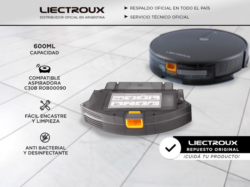 Optimiza el rendimiento de tu Aspiradora Robot Liectroux C30B con el Depósito de Polvo de Repuesto. Con una capacidad de 600ml, este depósito es ideal para mantener tus pisos completamente limpios y libres de polvo en cada ciclo de limpieza. Diseñado específicamente para el modelo ROB00090, es un repuesto genuino que asegura un ajuste perfecto y un funcionamiento óptimo. Mantén la eficiencia de tu robot aspirador con este accesorio indispensable y disfrutá de un hogar impecable sin esfuerzo.