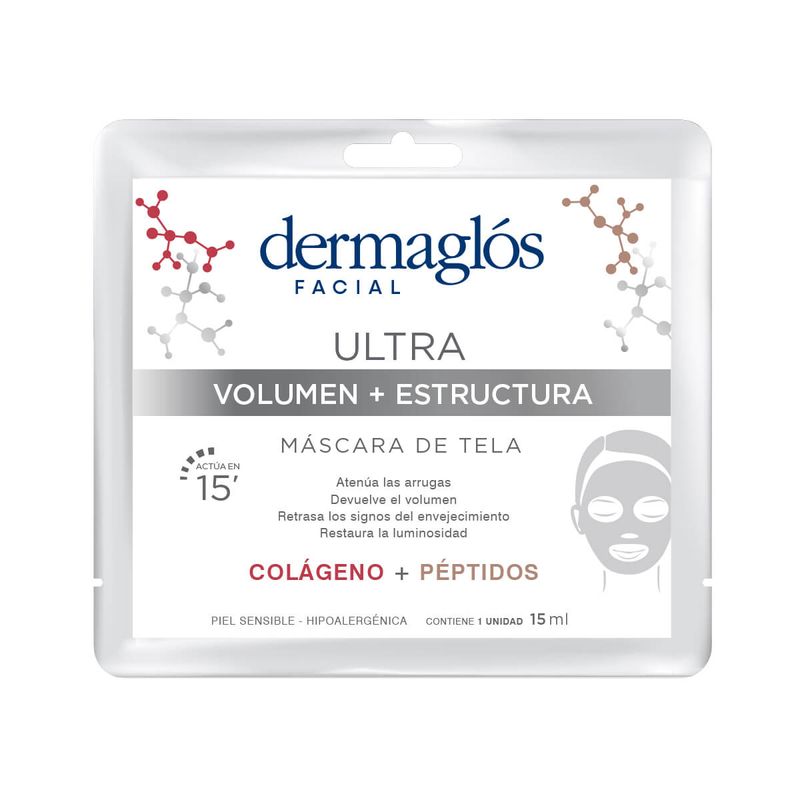 Máscar de Tela Dermaglos Ultra Volumen + Estructura 15ml. 1 unidad