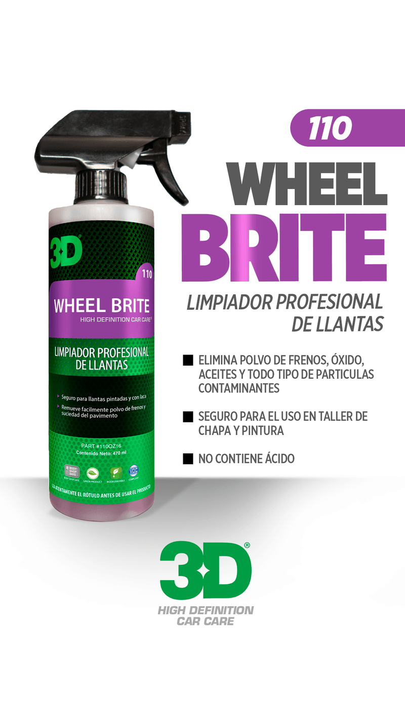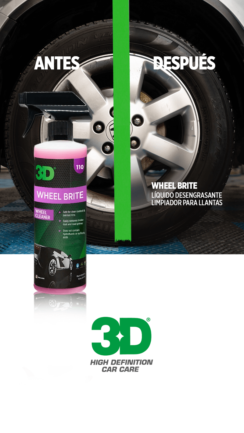 3D WHEEL BRITE es un limpiador de llantas desengrasante importado de Estados Unidos, elimina grasa, suciedad y residuos en minutos, sin dañar ni agredir superficies delicadas.Es poder puro. Además, su fórmula biodegradable es segura para vos, tu auto y el planeta. Podés limpiar tranquilo, sabiendo que estás eligiendo una opción responsable y moderna.