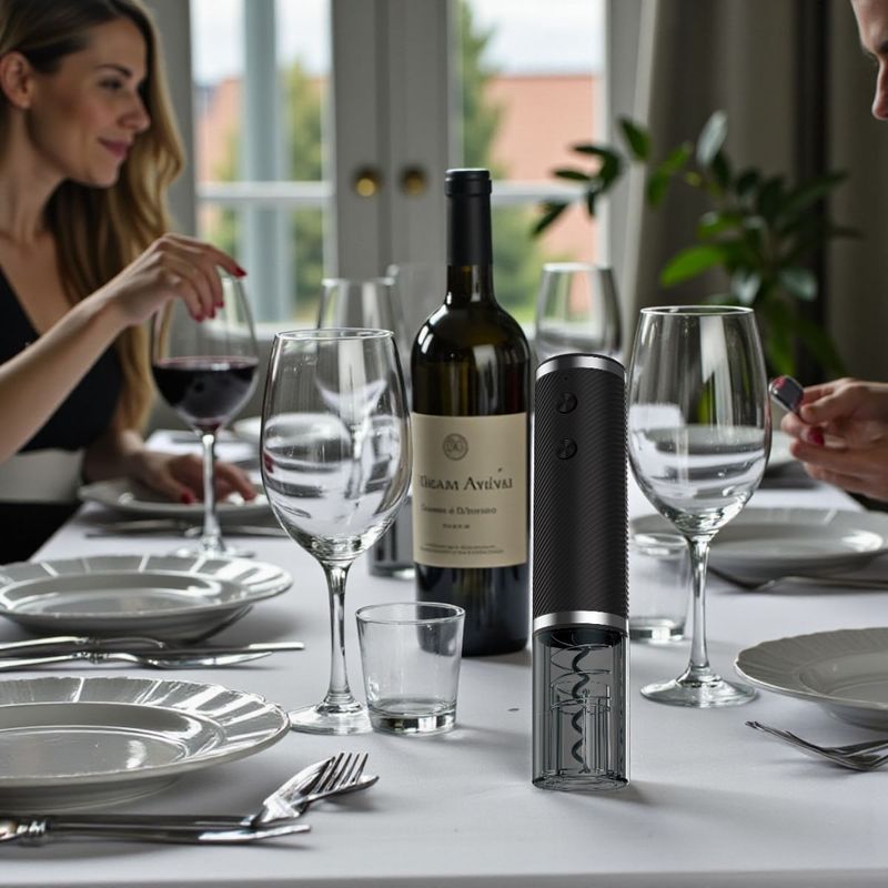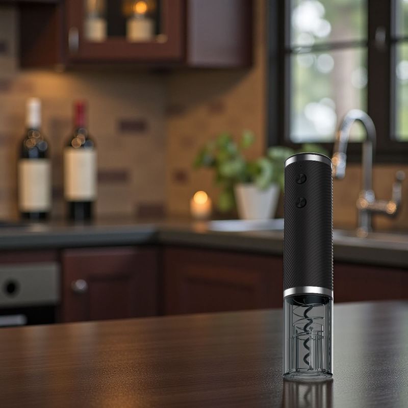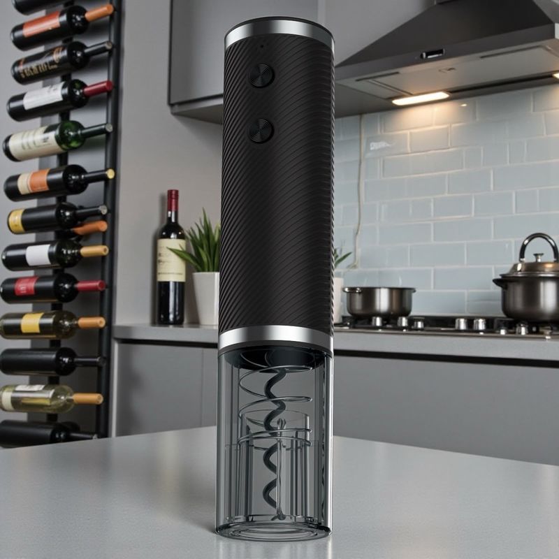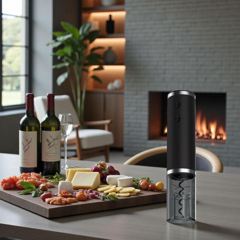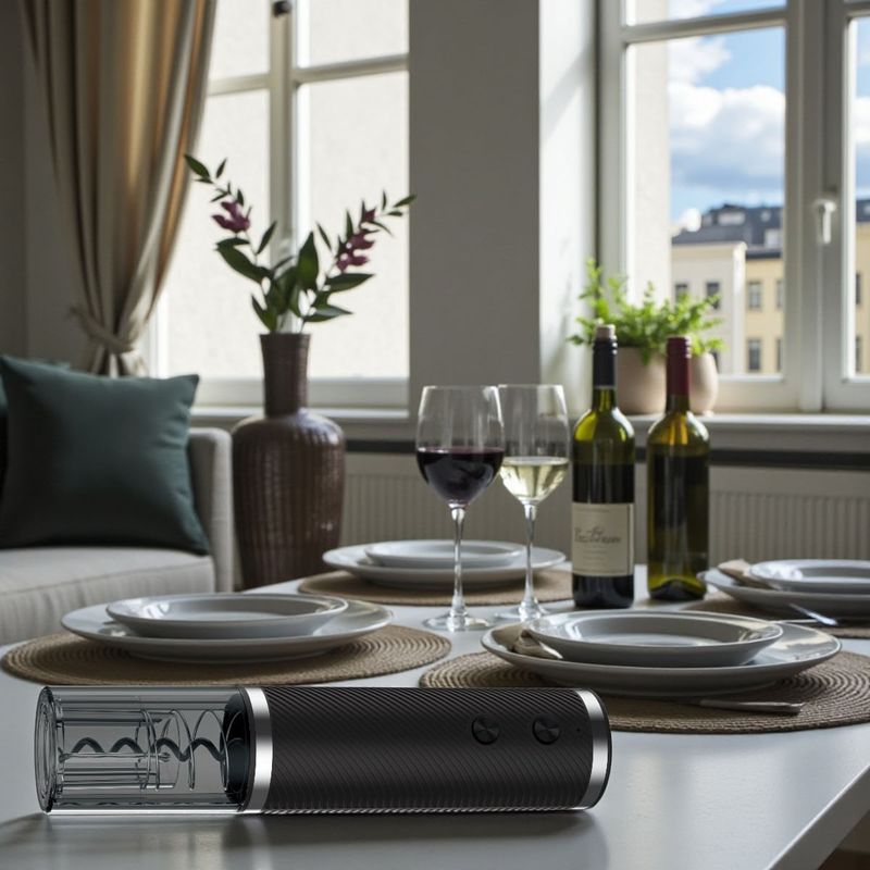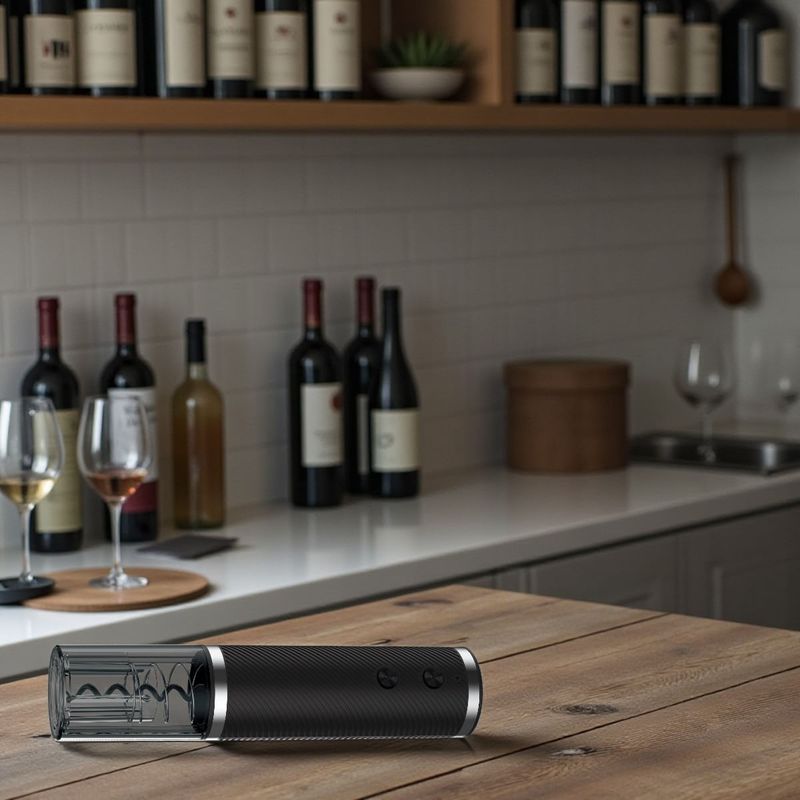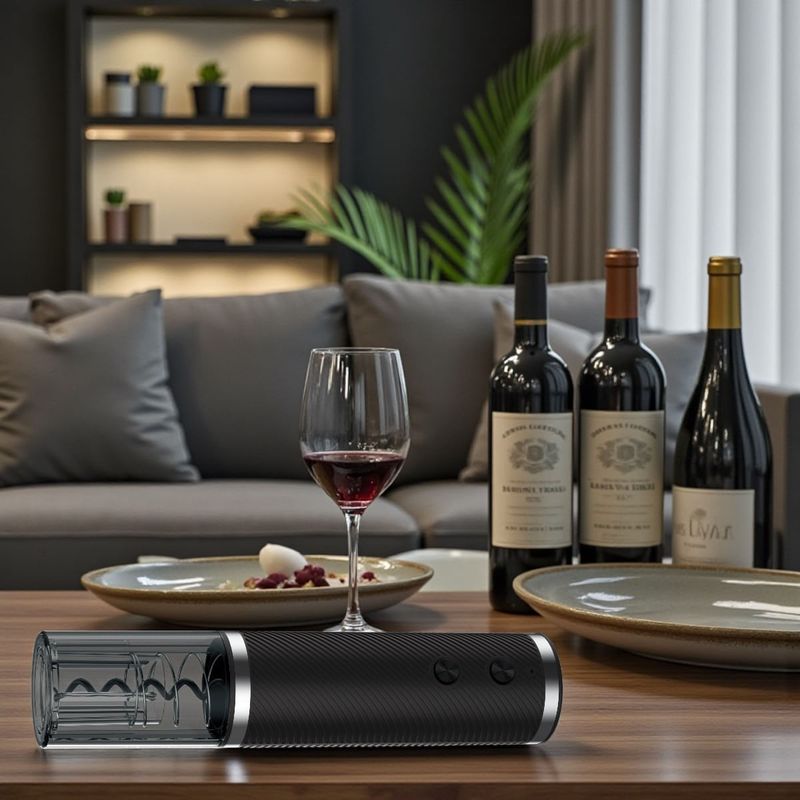 El Destapador Eléctrico de Botellas de Vino KLASSE transforma la experiencia de abrir una botella en un gesto simple, elegante y sin esfuerzo. Su potente motor permite retirar el corcho de forma rápida y segura con solo presionar un botón.