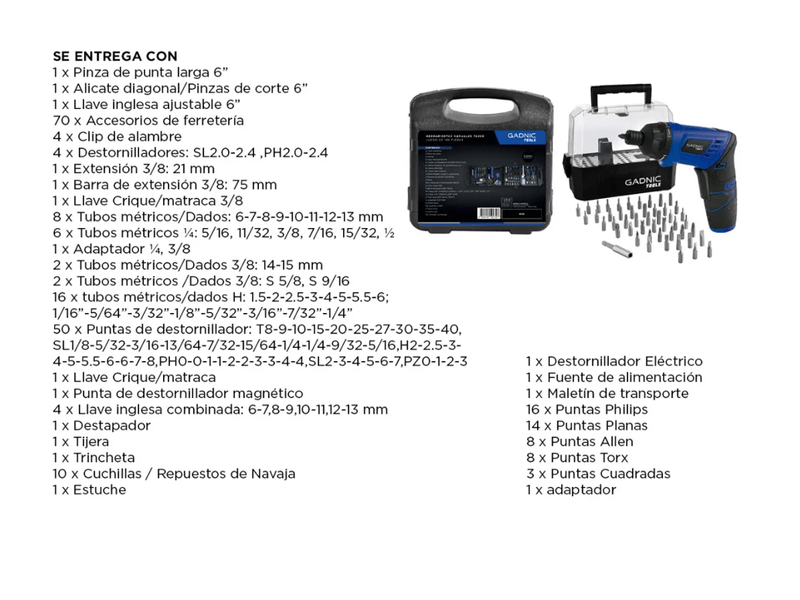 Destornillador Electrico GADNIC + Set de Herramientas 189pcs