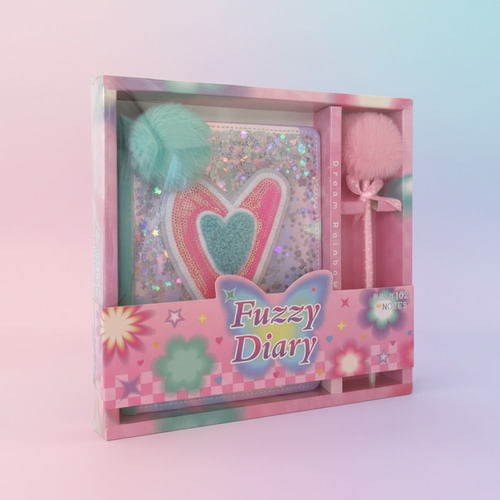 Artículos de libreríaCuadernos y carpetasAgendasDiario Intimo Con Lapicera Fuzzy Diary Sl7002 Shine Corazon Rosa Y Blanco