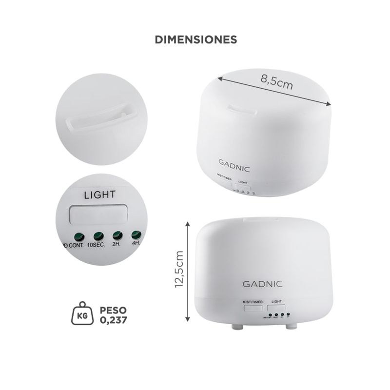 ¡Tecnología de vaporización ultrasónica! No utiliza calor, lo que permite que el difusor de esencias de gran capacidad GADNIC mantenga la integridad y las propiedades holísticas. Está diseñado para humidificar el aire en habitaciones de hasta 30 metros cuadrados y el área de cobertura de aromaterapia es de hasta 50 metros cuadrados. Podes irte a dormir, apagar la luz y configurar el temporizador del mismo para que se apague en 2 o 4 horas.
