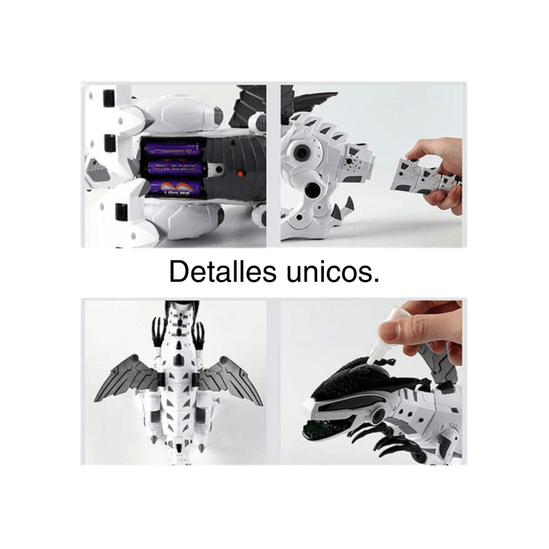 - Función de Pulverización: El dinosaurio pulveriza vapor con luz roja, simulando que lanza fuego.
